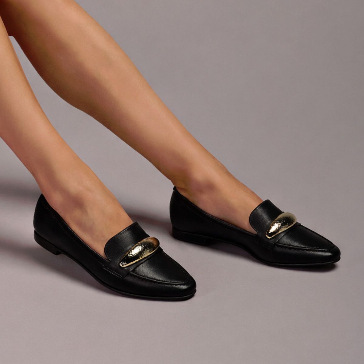 Polished, timeless and endlessly wearable — this classic loafer is designed for everyday refinement. Crafted with a smooth upper and finished with understated gold hardware, it delivers a sharp silhouette without feeling formal. A softly contoured footbed and low-profile sole make it an easy choice from morning through evening.