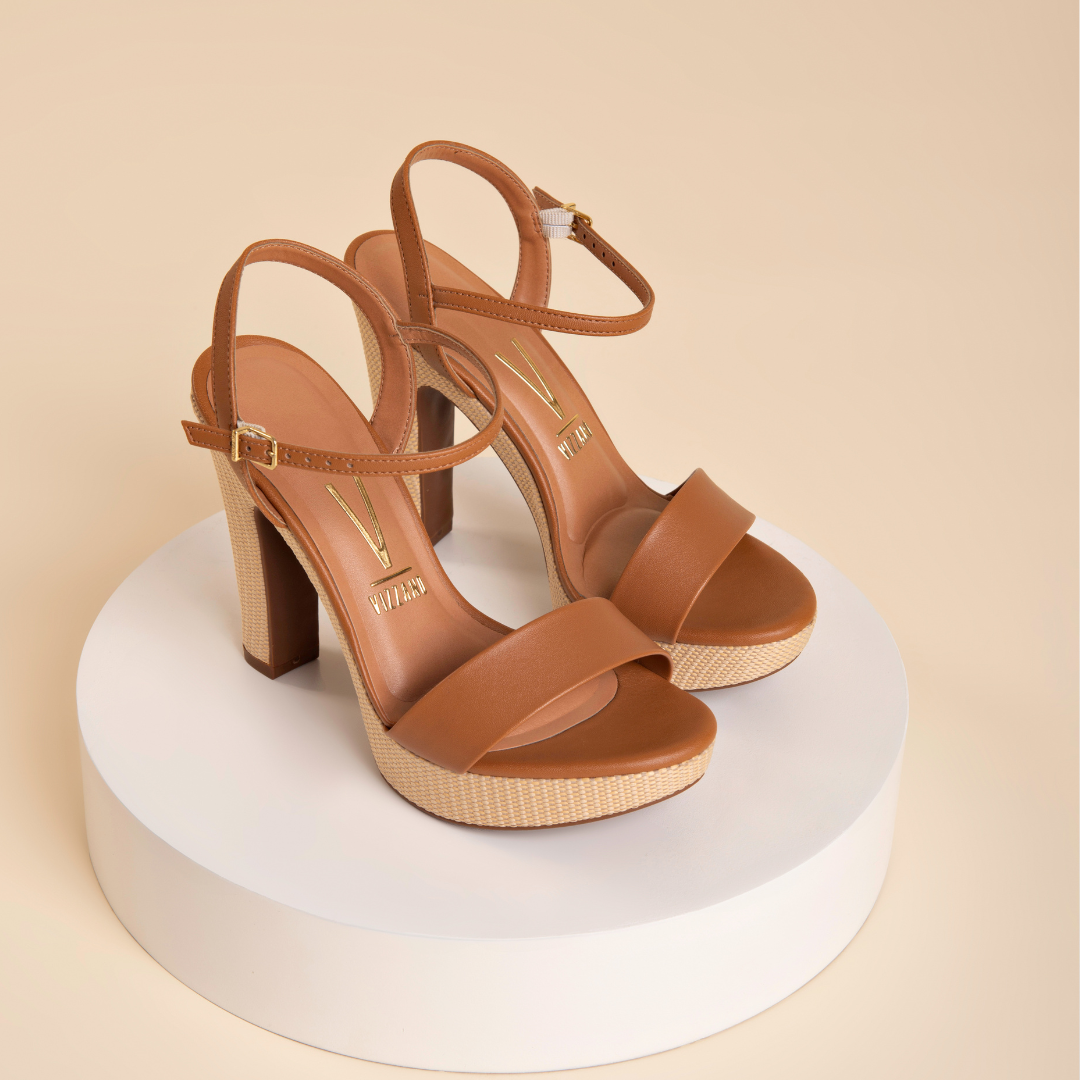 Vizzano 6292-200 High Heel Raffia Platform Sandal in Camel Napa