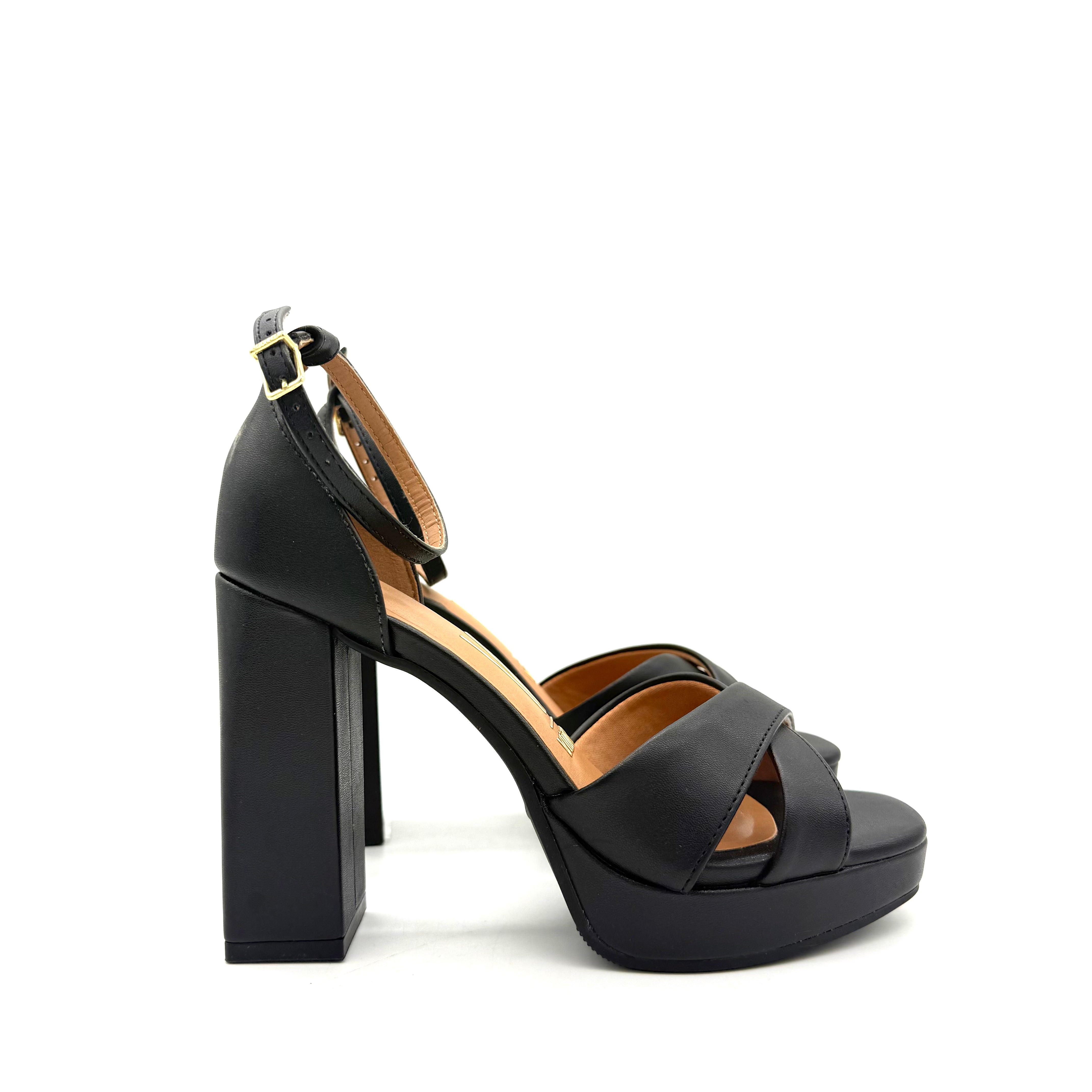 Vizzano 6551-103 Block Heel Platform Sandal in Black Napa